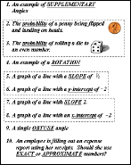 The following files contain all that is needed for a classic style of a bingo review game for the mathematics GHSGT. The goal is to keep calling random prompts until a student gets 5 answer in a row (either vertically, horizontally, or diagonally).